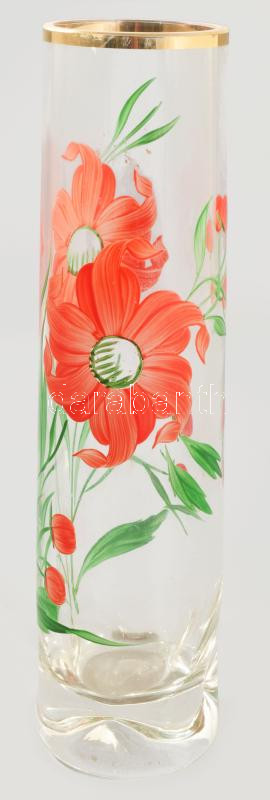 Piros virágos váza. Formába öntött, kézzel festett, hibátlan 26 cm