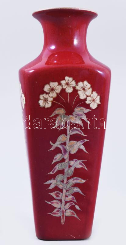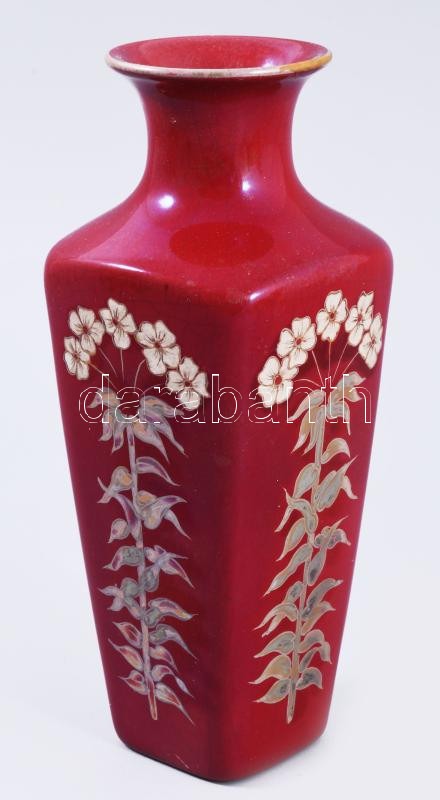 Zsolnay váza. Ökörvér mázas, virág mintás. Kézzel festett, jelzett (Mr... https://www.darabanth.com/en/514-Auction-philately-postcards-numismatics-artwork-books-colletibles-jewelry/515.0/Porcelain-ceramics-glassware/Glass-objects~573/Zsolnay-vaza-Okorver-mazas-virag-mintas-Kezzel-festett-jelzett-Mrs-Fulopp-kis-rest~II3444328