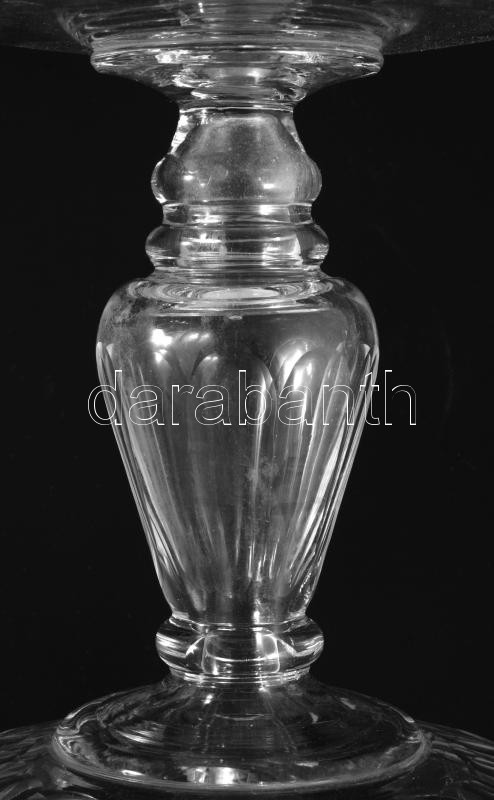 cca 1850-1880 Biedermeier talpas kínáló. Szakított., fűrészelt hutaüveg, kis pattogzással, karccal, d: 23,5 cm, m: 24 cm