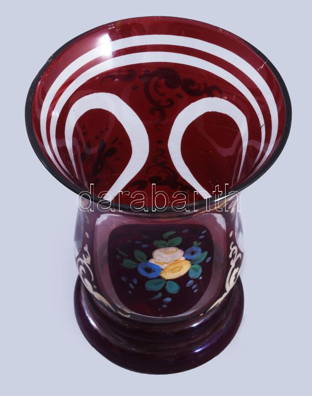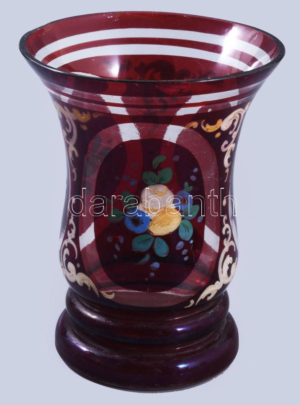 cca 1880 Biedermeier díszpohár, lepattanással, kopással, m: 12,5 cm