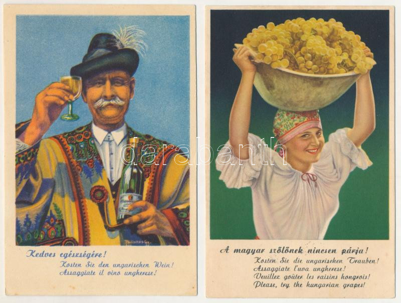 2 db RÉGI magyar reklám grafikai képeslap: 'A magyar szőlőnek nin... https://www.darabanth.com/en/514-Auction-philately-postcards-numismatics-artwork-books-colletibles-jewelry/515.0/Postcards/Advertisement~1183/2-db-REGI-magyar-reklam-grafikai-kepeslap-A-magyar-szolonek-nincsen-parja-es-Kedves-eges~II3480791