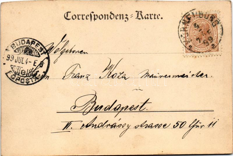 1899 Korneuburg, railway station, train. Verlag v. Joh. Lederer (cut)