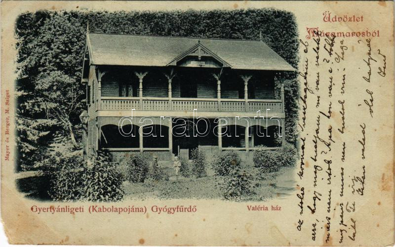 1899 Gyertyánliget, Polyana-Gyertyánliget, Kabola Polyána, Kobyletska Poliana (Máramaros, Maramures); Valéria ház. Mayer és Berger kiadása / villa (EM)