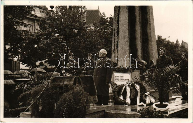 Description: 1943 Munkács, Mukacheve, Mukacevo; bevonulás után, emlékmű avatás, koszorúzás / after the entry of the Hungarian troops, monument inauguration, wreath laying. photo