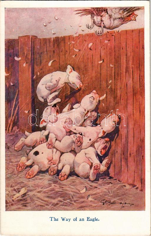 The Way of an Eagle, puppies, dogs. The R.P.S. Series Post Cards 1015. s: G. E. Studdy
