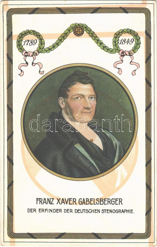https://www.darabanth.com/en/514-Auction-philately-postcards-numismatics-artwork-books-colletibles-jewelry/515.0/Postcards/Famous-People~1166/Franz-Xaver-Gabelsberger-der-Erfinder-der-deutschen-Stenographie-Franz-Xaver-Gabelsberger-invent~II3482108