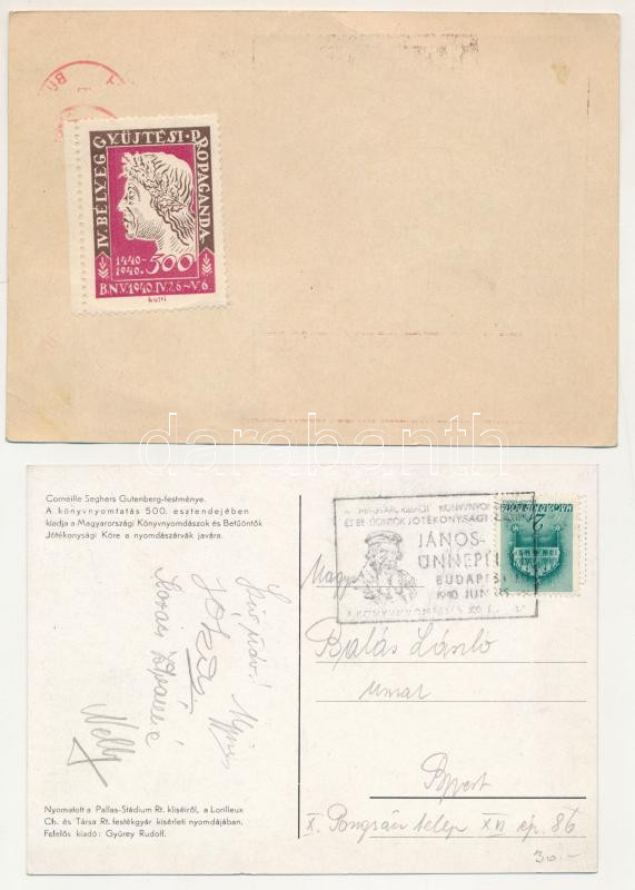 Johannes Gutenberg - 2 db RÉGI képeslap (1940): Emlékkiállítás és Jáno... https://www.darabanth.com/en/514-Auction-philately-postcards-numismatics-artwork-books-colletibles-jewelry/515.0/Postcards/Famous-People~1166/Johannes-Gutenberg-2-db-REGI-kepeslap-1940-Emlekkiallitas-es-Janos-unnepely-alkalmi-b~II3480778