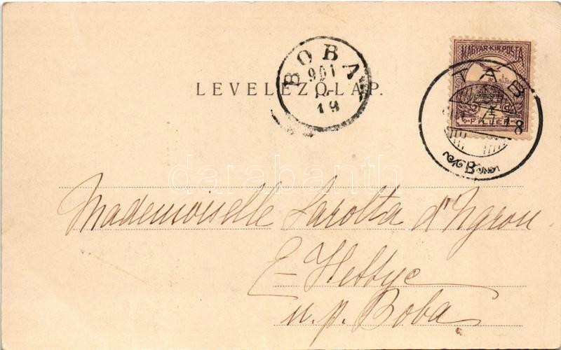 1901 Siófok, Lóverseny tér, Vasúti híd. Kiadja Ellinger Ede fényképész. A képeslap címzettje Ábránfalvi Ugron Sarolta (1883 - 1957)