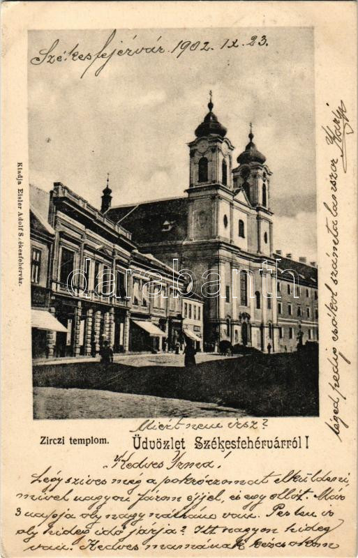 https://www.darabanth.com/en/514-Auction-philately-postcards-numismatics-artwork-books-colletibles-jewelry/515.0/Postcards/Hungary~1104/1902-Szekesfehervar-Zirci-templom-uzletek-Eisler-Adolf-kiadasa-EK~II3477903