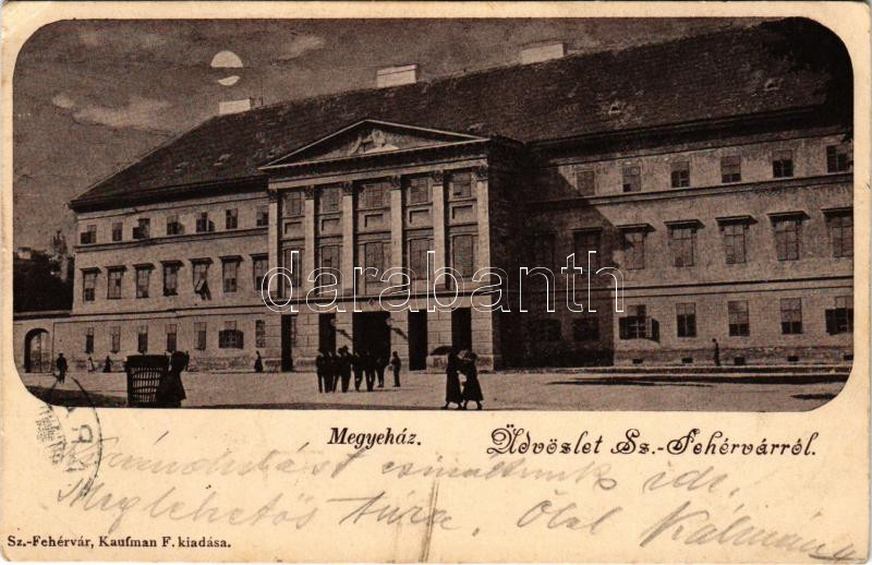 1904 Székesfehérvár, Megyeház este holdfényben. Kaufman F. kiadása (EM)
