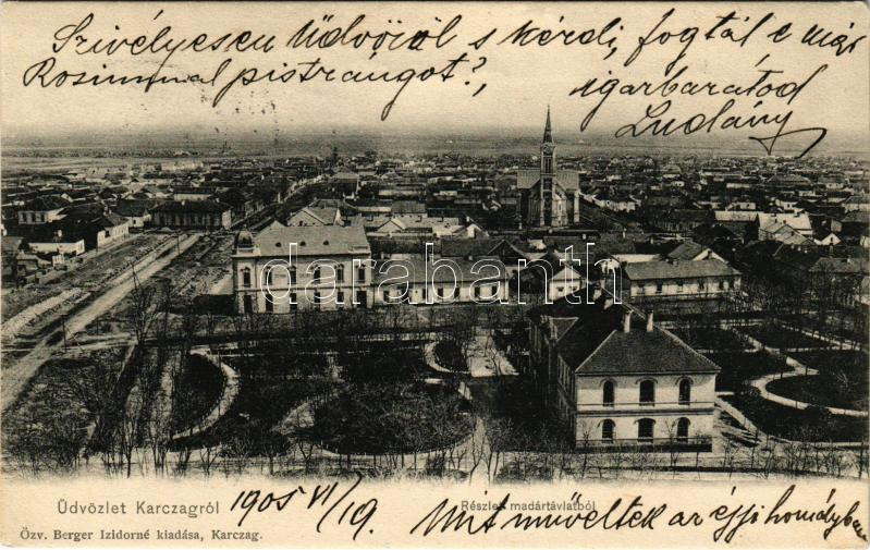 1905 Karcag, részlet madártávlatból, látkép. Özv. Berger Izidorné kiad...
