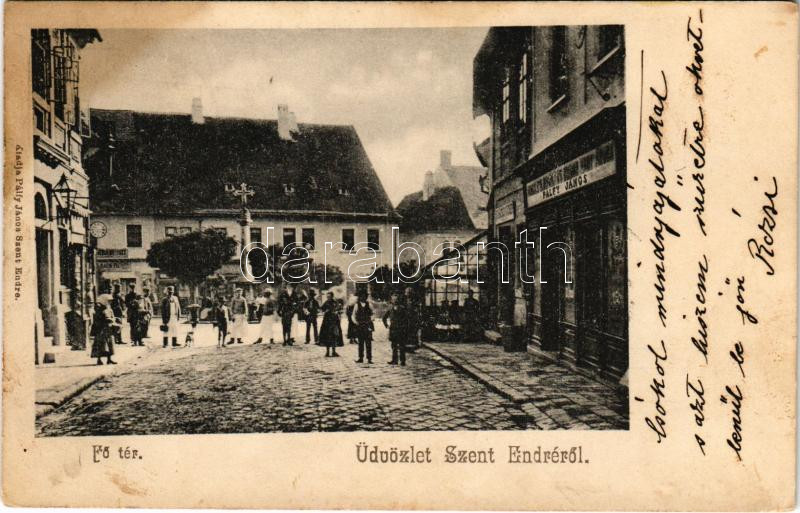 1905 Szentendre, Fő tér, Kereskedők keresztje, Pálfy János üzlete és saját kiadása (fl)