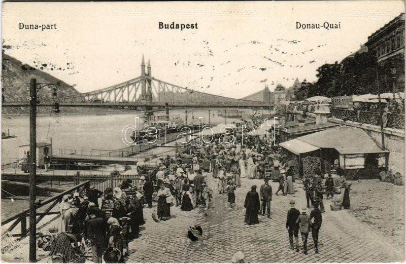 1913 Budapest, Ferenc József híd, Gellérthegy, Duna-part, piac (EB)