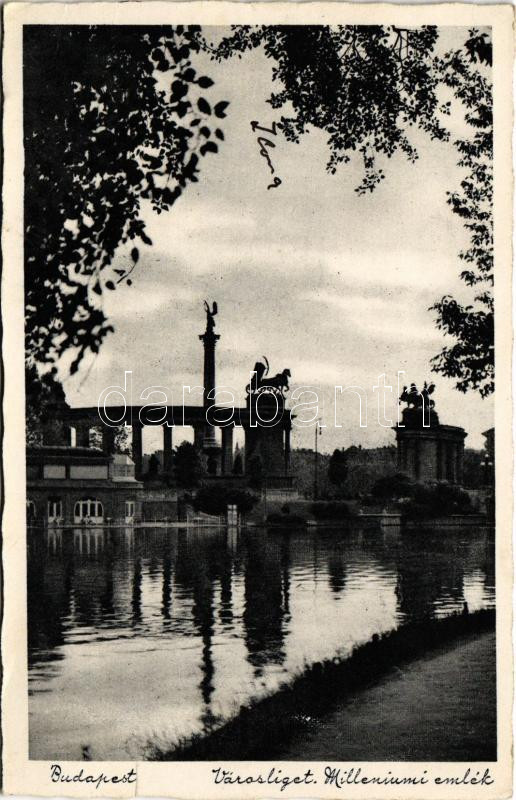 1937 Budapest XIV. Városligeti tó és Milleniumi emlék (EK)