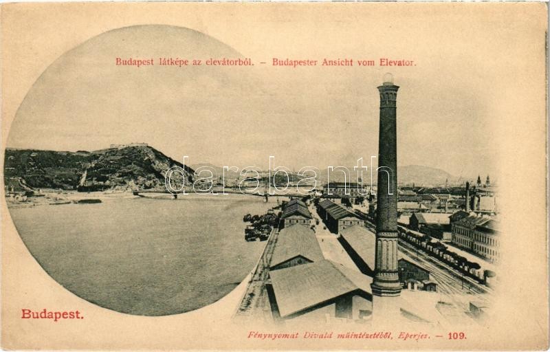 Budapest IX. Látkép az elevátorból, Citadella, iparvasút, a Gellért tér még teljesen beépítetlen. Divald 109.