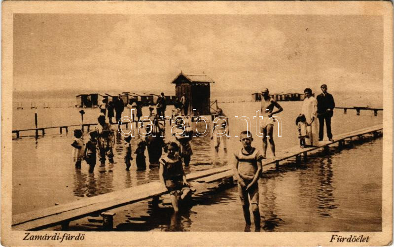 Zamárdi-fürdő, fürdőélet, fürdőzők. Tihanyi István kiadása (apró szaka...