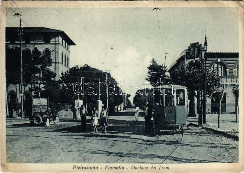 Pietrasanta, Fiumetto, Stazione del Tram. Ediz. Benedetti Felicita / tram station, automobile (EB)