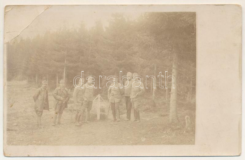 1917 Első világháborús tábori posta a Kárpátokból, Dr Nagy Sándor ezredorvos levelével, osztrák-magyar katonák egy sírhely mellett / WWI Austro-Hungarian K.u.k. military postcard sent from the Carpathians, soldiers by a grave. photo + "Tábori postahivatal 367" "Marodenhaus der Ausbildungsgruppe der K.u.k. 1. Armee" (EB)