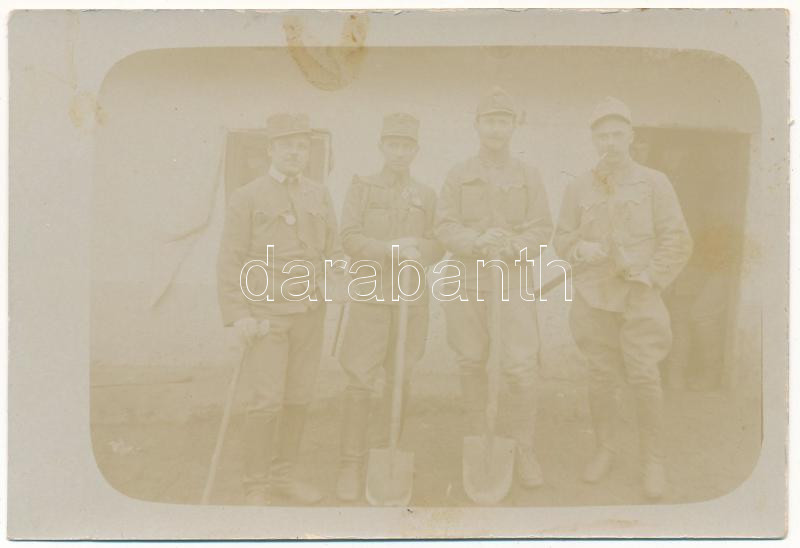 Ridkivtsi, Raranca, Rarancze (Bukowina); első világháború, osztrák-magyar katonák, a gyalogság segéd harci eszközei, ásók / WWI Austro-Hungarian K.u.k. military, soldiers with shovels. photo (fl)