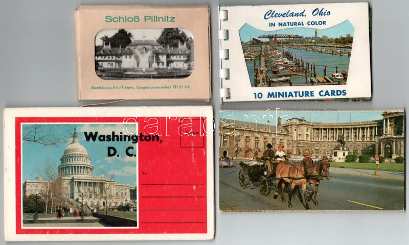 Description: 4 db MODERN város képeslapfüzet: Pillnitz, Cleveland, Bécs, Washington / 4 modern foreign town postcard booklets: Pillnitz, Cleveland, Wien, Washington