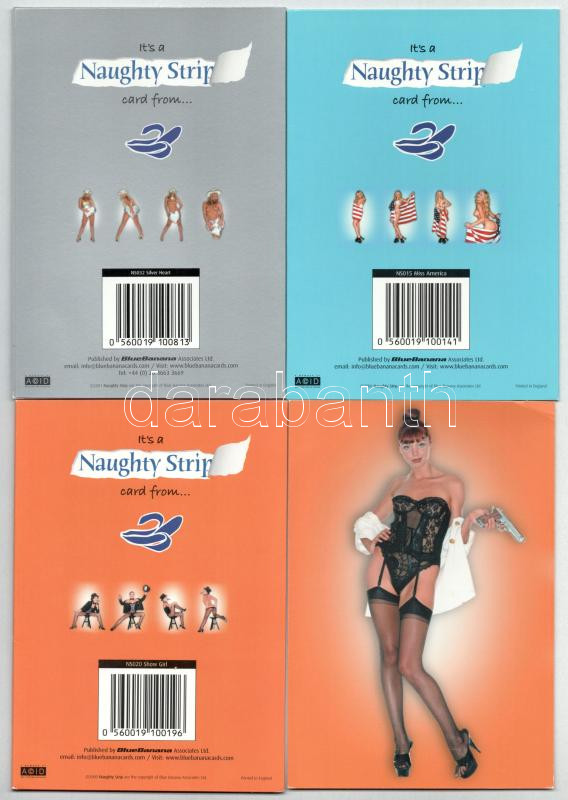 9 db MODERN kihajtható erotikus képeslap, "Naughty Strip" so...