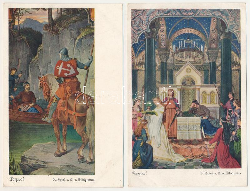 Parzival / 6 db RÉGI német művészlap: Parsifal (egy sorozat) / 6 pre-1...