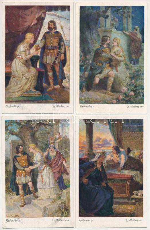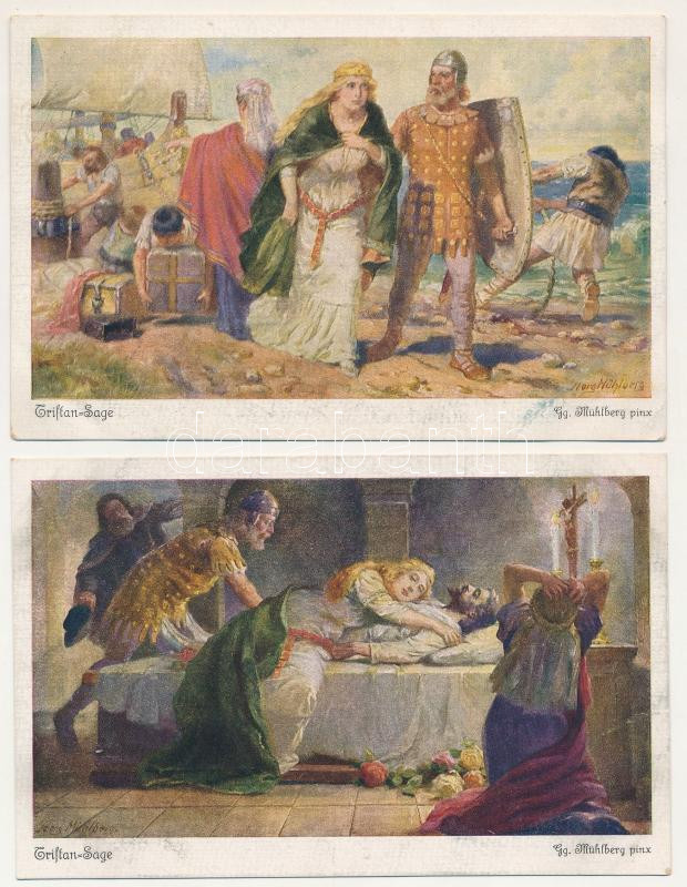Tristan-Sage / 6 db RÉGI német művészlap: Trisztán (egy sorozat) / 6 pre-1945 German art postcards: Tristan series s: Mühlberg