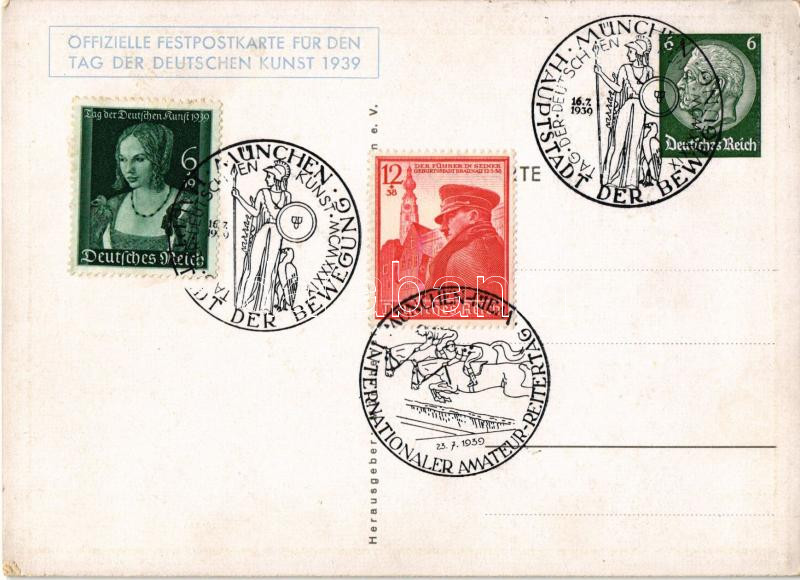 1939 Tag der Deutschen Kunst, München / German Art Exhibition, NSDAP German Nazi Party propaganda, swastika + So. Stpl. s: Kaspar (EK)