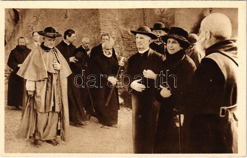Description: His Emin. Card. Archbishop Hayes of New York entering the Catacombs of St. Callistus to celebrate Mass in the Crypt of the Popes. At the right, the daughter of the renowned De Rossi, discoverer of the Crypt
