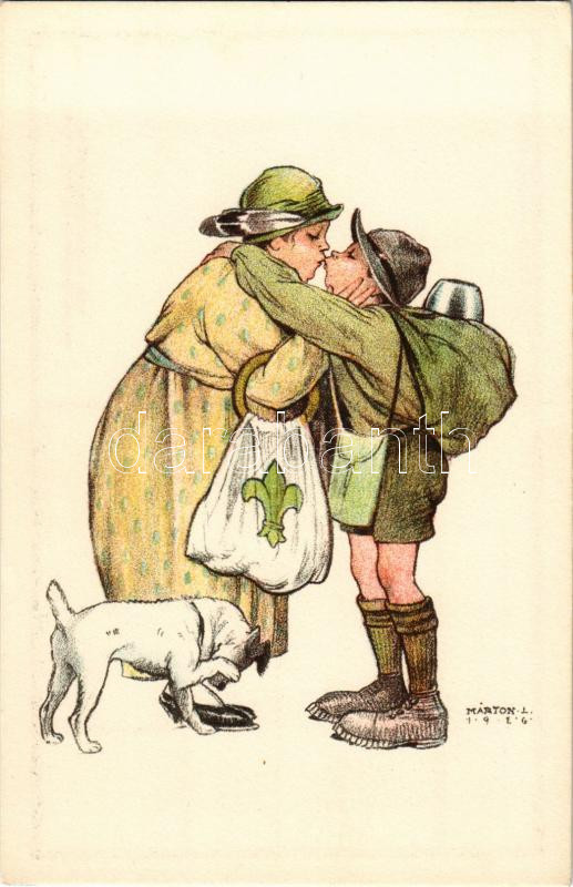 Cserkész az édesanyjával. kiadja a Magyar Cserkészszövetség Nagytábortanácsa / Scout with his mother s: Márton L.