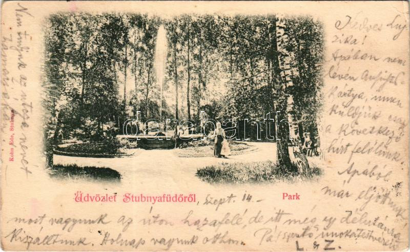1900 Stubnyafürdő, Túróchévíz, Stubnianske Teplice, Turcianske Teplice; park. Kohn Ede kiadása / park (fl)