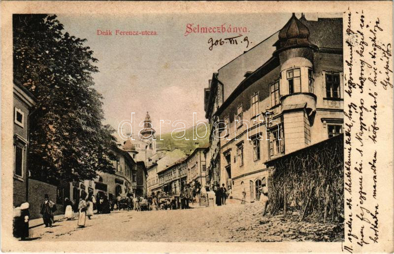 1906 Selmecbánya, Schemnitz, Banská Stiavnica; Deák Ferenc utca, üzlet... https://www.darabanth.com/en/514-Auction-philately-postcards-numismatics-artwork-books-colletibles-jewelry/515.0/Postcards/Slovakia~1106/1906-Selmecbanya-Schemnitz-Banska-Stiavnica-Deak-Ferenc-utca-uzletek-Hungaria-szalloda-J~II3482049