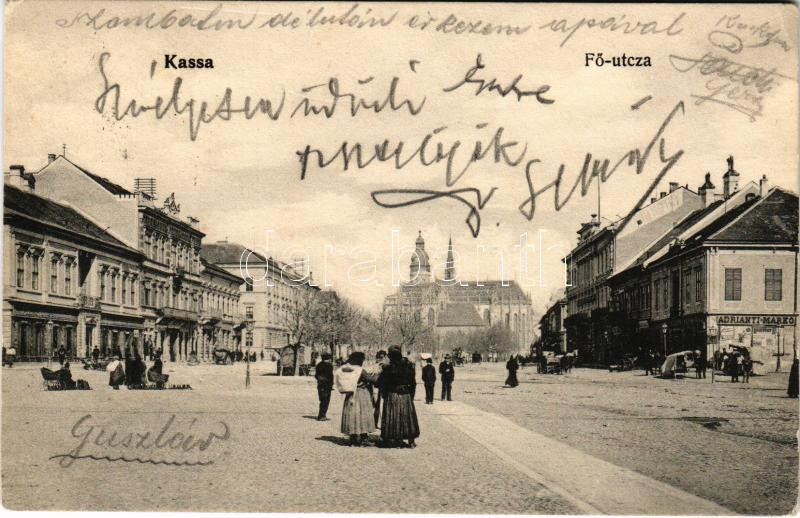 https://www.darabanth.com/en/514-Auction-philately-postcards-numismatics-artwork-books-colletibles-jewelry/515.0/Postcards/Slovakia~1106/1907-Kassa-Kosice-Fo-utca-Adrianyi-es-Marko-uzlete-piac-ter-Laszlo-Bela-kiadasa-sq~II3478374