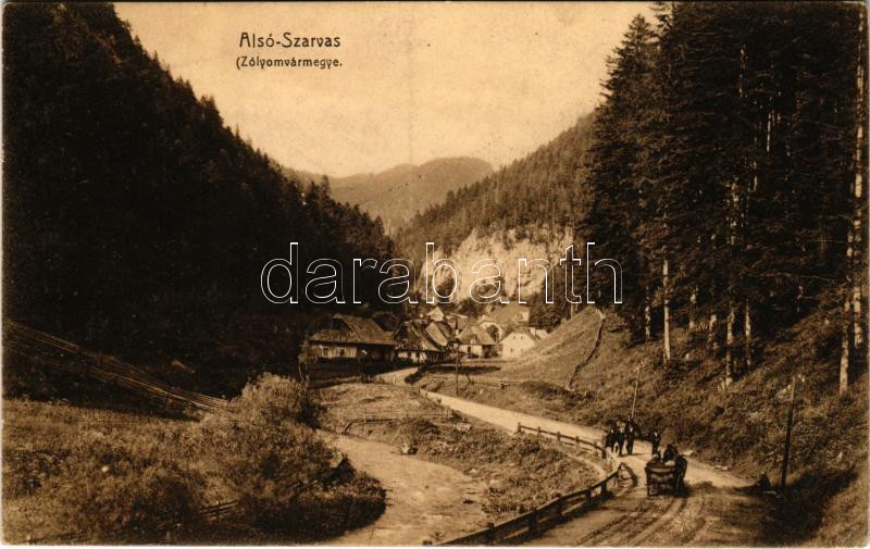 1915 Alsószarvas, Szarvas, Dolny Jelenec (Óhegy, Staré Hory, Besztercebánya); látkép. Machold F. kiadása / general view, road (fl)