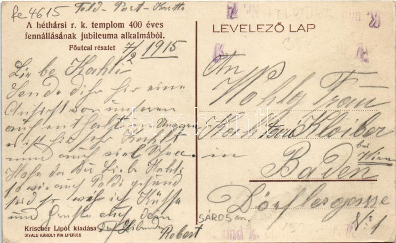 1915 Héthárs, Lipjany, Lipany; A héthársi római katolikus templom 400 ... https://www.darabanth.com/en/514-Auction-philately-postcards-numismatics-artwork-books-colletibles-jewelry/515.0/Postcards/Slovakia~1106/1915-Hethars-Lipjany-Lipany-A-hetharsi-romai-katolikus-templom-400-eves-fennallasanak-ju~II3480465