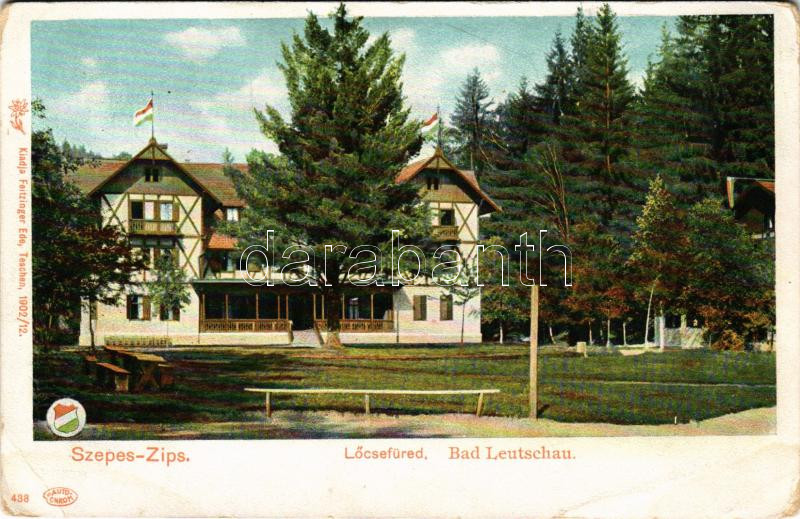 Lőcsefüred, Lőcse-fürdő, Levocské Kúpele (Lőcse, Levoca); Fürdőház, nyaraló. Feitzinger Ede 1902/12. 438. Auto-Chrom / Bad Leutschau / spa, villa (EB)
