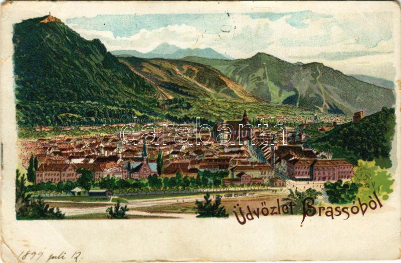1899 (Vorläufer) Brassó, Kronstadt, Brasov; látkép / general view. litho (b)
