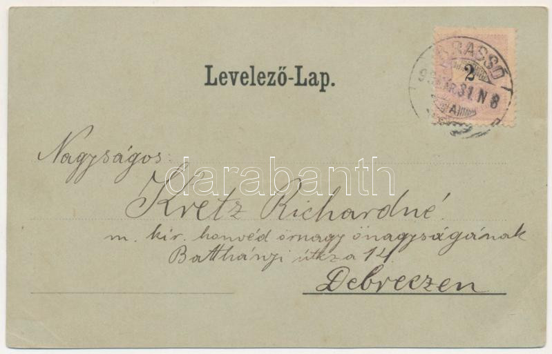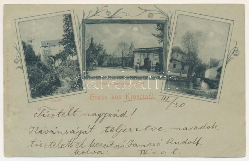 1900 Brassó, Kronstadt, Brasov; Árokmente, Árvaház utcai kapu, este holdfényben / Graft, Waisenhausgässer-Thor / castle, gate, canal at night in moonlight. W. Hiemesch Art Nouveau, floral (felületi sérülés / surface damage)