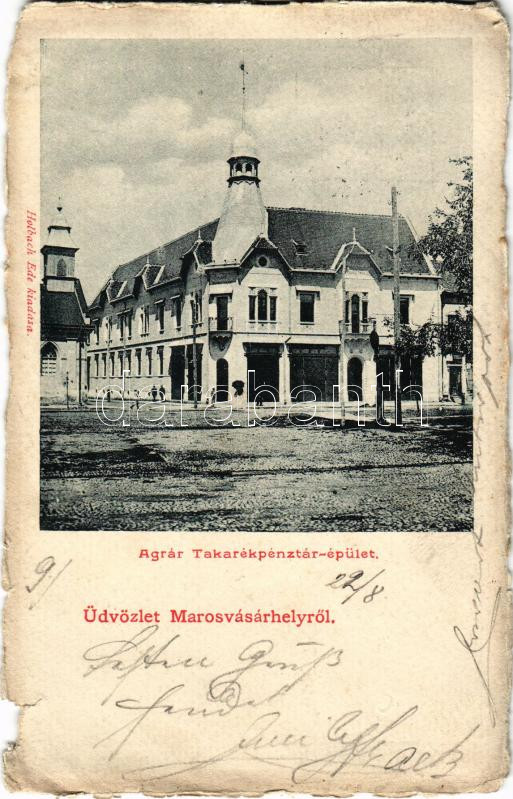 1902 Marosvásárhely, Targu Mures; Agrár takarékpénztár. Holbach Ede kiadása / agricultural savings bank 8szakadások / tears)