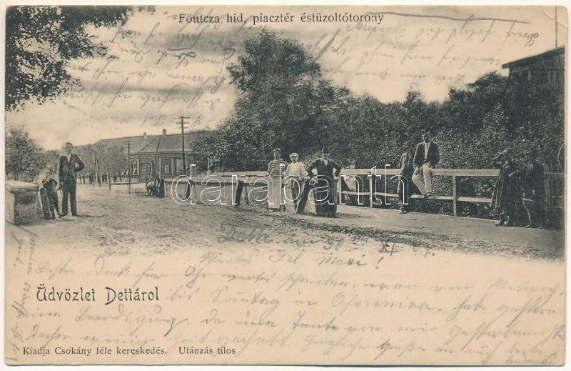 1904 Detta, Ghedu, Deta; Fő utca, híd, piac tér és tűzoltótorony. Kiad...