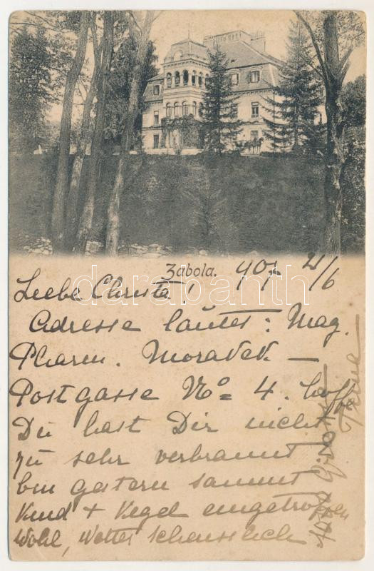 1907 Zabola, Zabala; Gróf Mikes kastély. A képeslap címzettje Christa ...