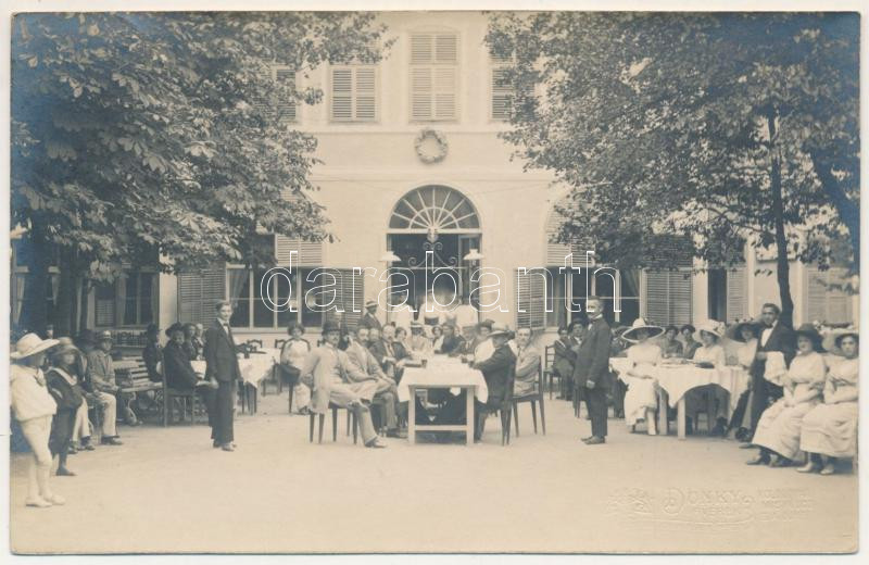 1913 Beszterce, Bistritz, Bistrita; Étterem kerthelyisége vendégekkel és pincérekkel. Dunky Fivérek felvétele / restaurant garden with guests and waiters. photo