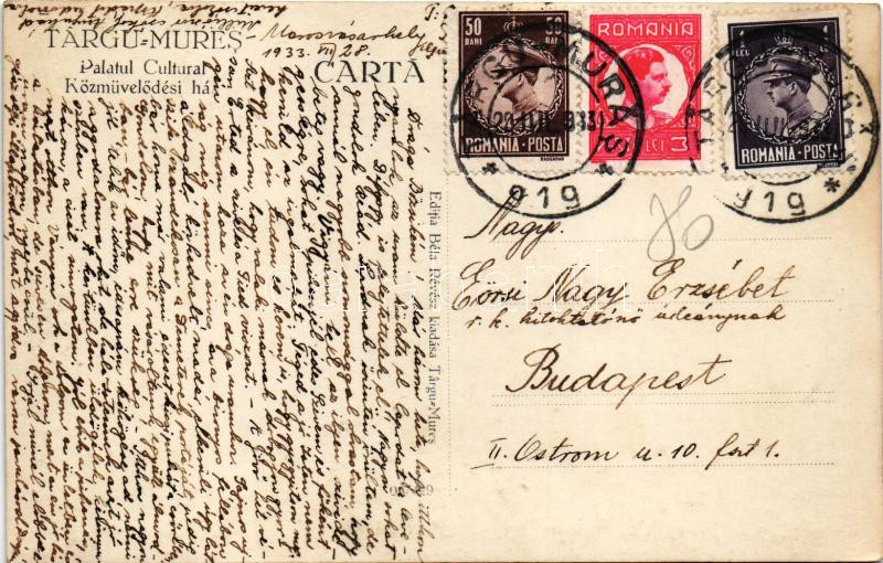 1933 Marosvásárhely, Targu Mures; Palatul Cultural / Kultúrpalota, Köz...