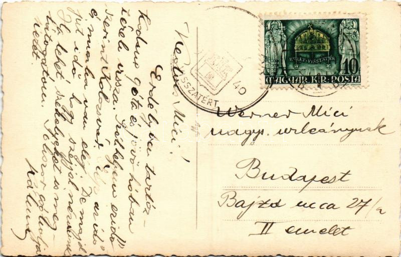 1940 Szováta, Sovata; Terasa / Medve-tó a terasszal és vendégekkel / spa, lake, terrace. photo + "1940 KOLOZSVÁR VISSZATÉRT" So. Stpl (EK)