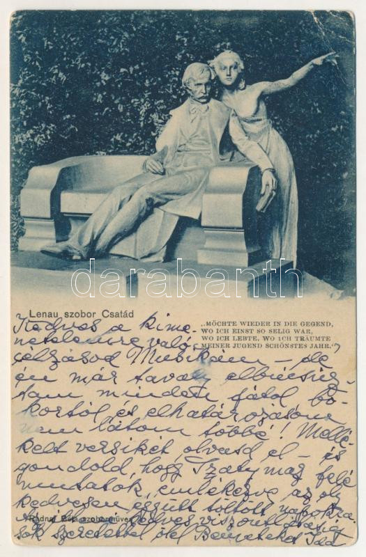 Csatád, Lenauheim (Temes); Lenau szobor. Radnai Béla tanár szoborműve ...