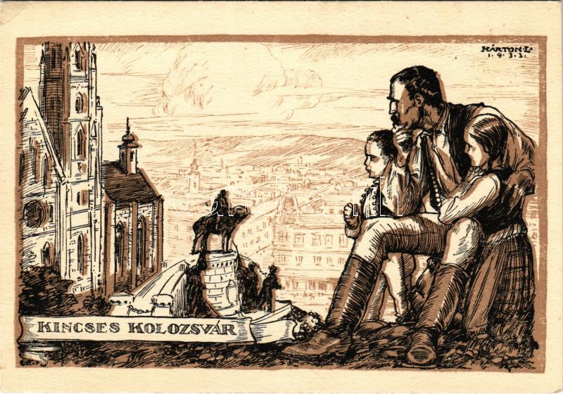 Description: Kolozsvár, Cluj; Kincses Kolozsvár irredenta művészlap. Magyar Nemzeti Szövetség kiadása / Hungarian irredenta propaganda art postcard s: Márton L. (EK)