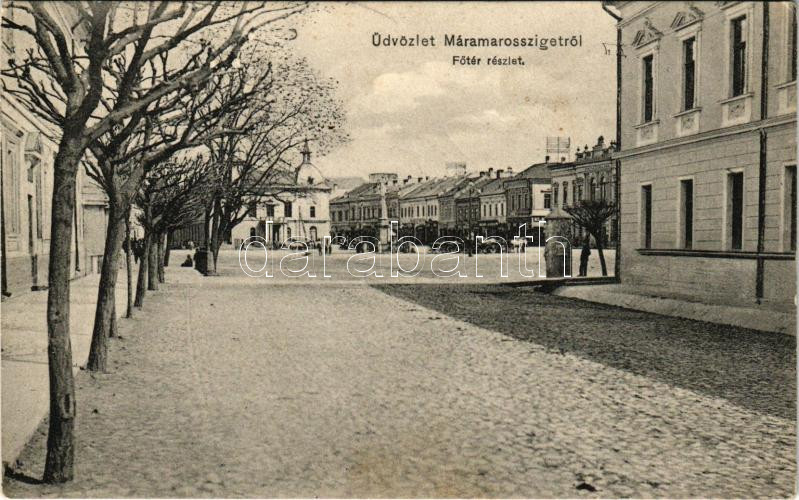 Máramarossziget, Sighetu Marmatiei; Fő tér, üzletek, piac. Kaufman Á. ...