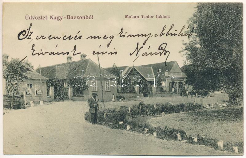 Nagybacon, Nagy-Baczon, Batanii Mari; Mokán Tódor lakása, üzlet / vill...