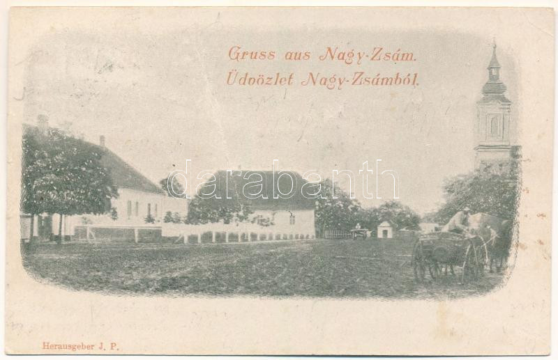 Nagyzsám, Grossscham, Sama, Jamu Mare; Fő tér, templom / main square, ...