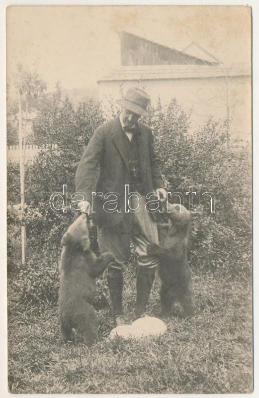 Rafna, Raffna, Ramna; férfi két medveboccsal / man with two bear cubs. photo (fl)